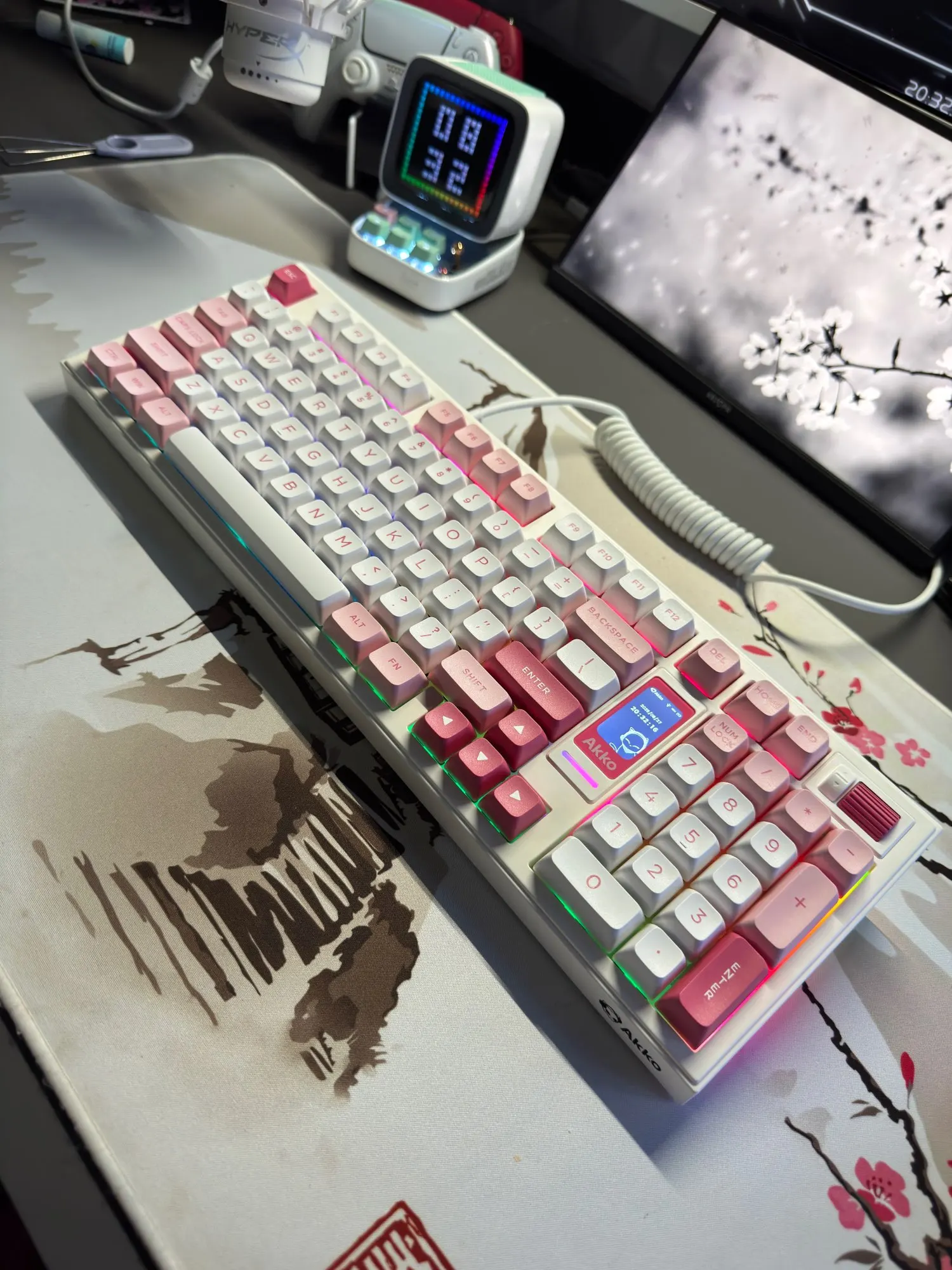 Akko is introducing an TFT (LCD) screen on a keyboard for the first time, featuring multimedia functions and user-uploaded GIF support (controlled by Akko Cloud Driver). Separate 16M chip for programming animations.