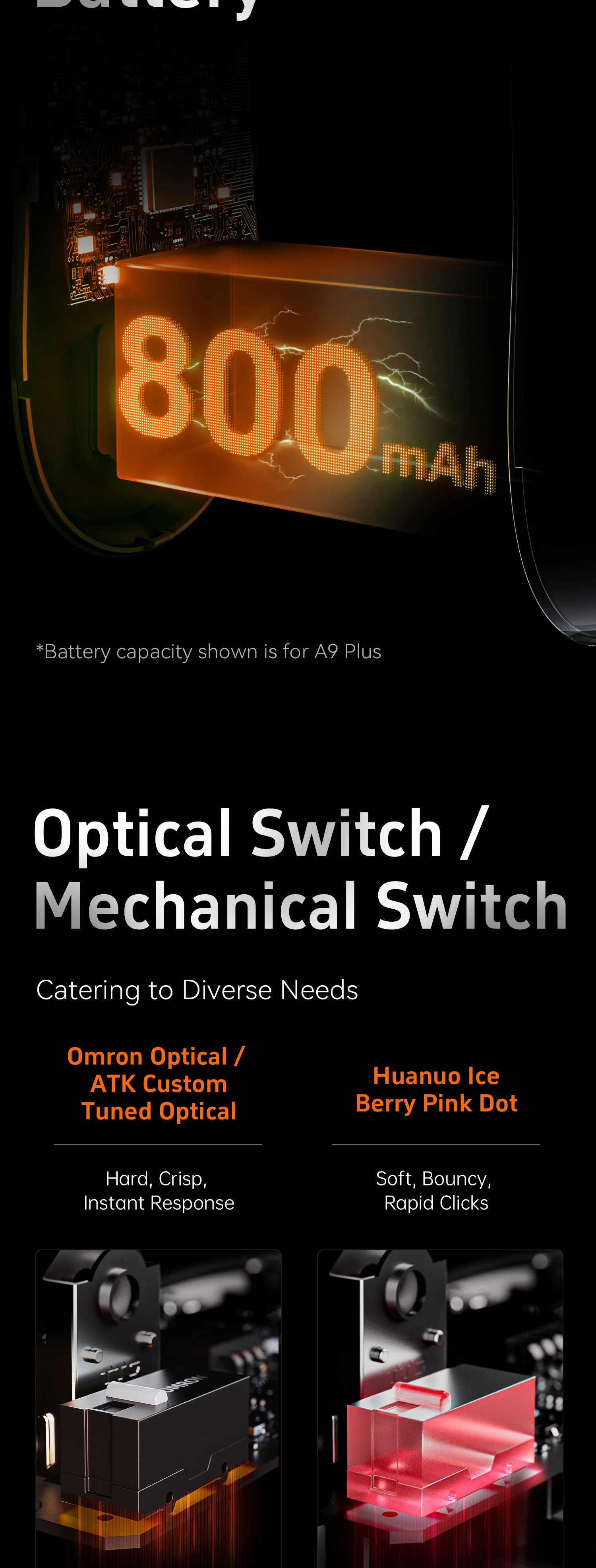 The ATK Dragonfly A9 features flagship optical / mechanical switches (varies by model) to cater to diverse gaming needs: