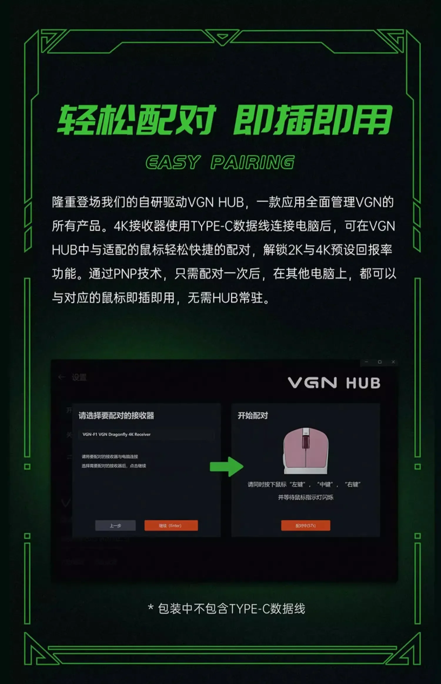 Plug and play with the corresponding mouse, without HUB resident.