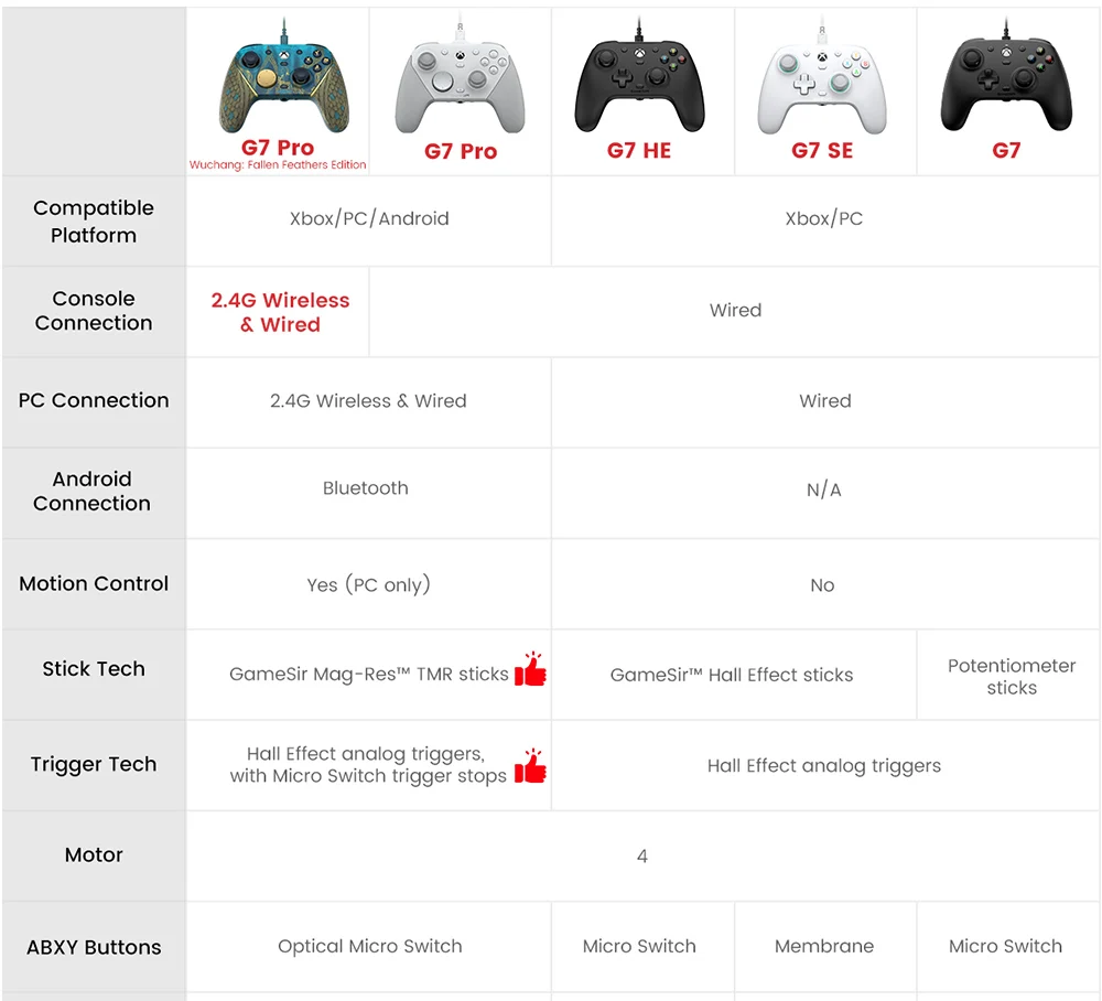 4.Does the G7 Pro Wuchang: Fallen Feathers edition have Hall Effect analog triggers?