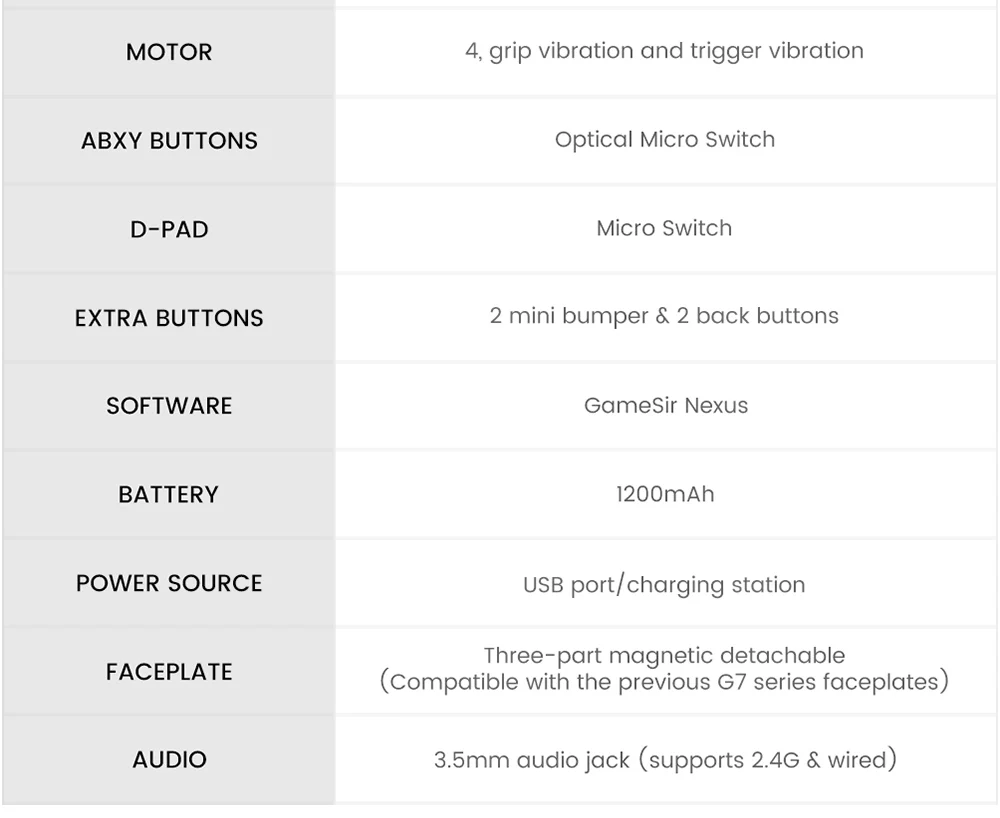 Charging Time: 2.5h (5V⎓1A, tested by GameSir Lab)