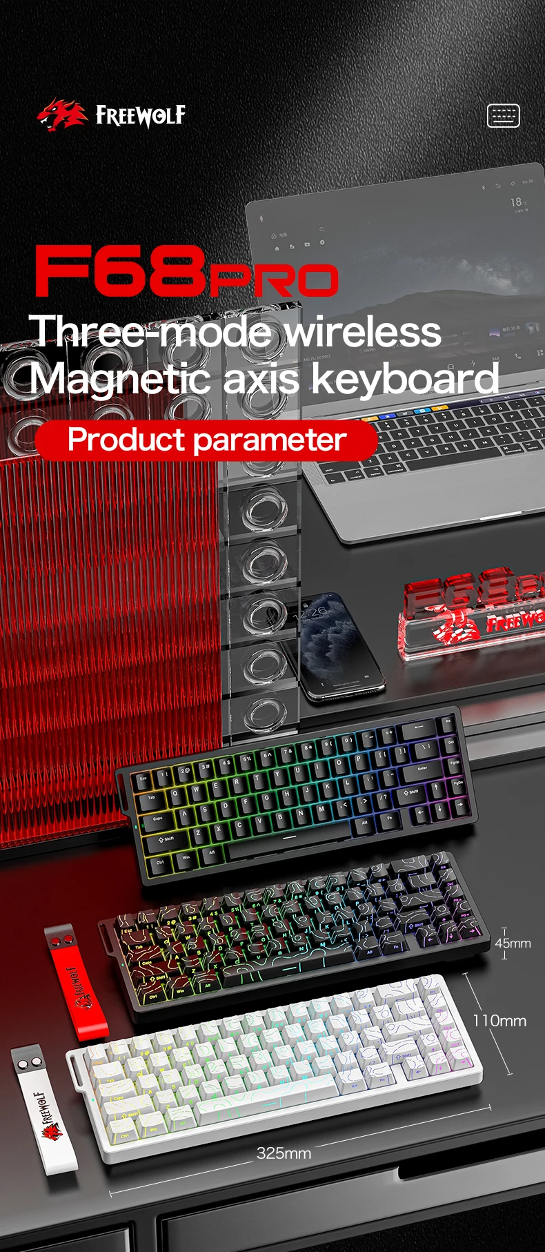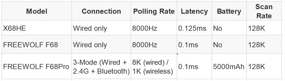 X68HE and F68 are wired gaming keyboards with magnetic switches.