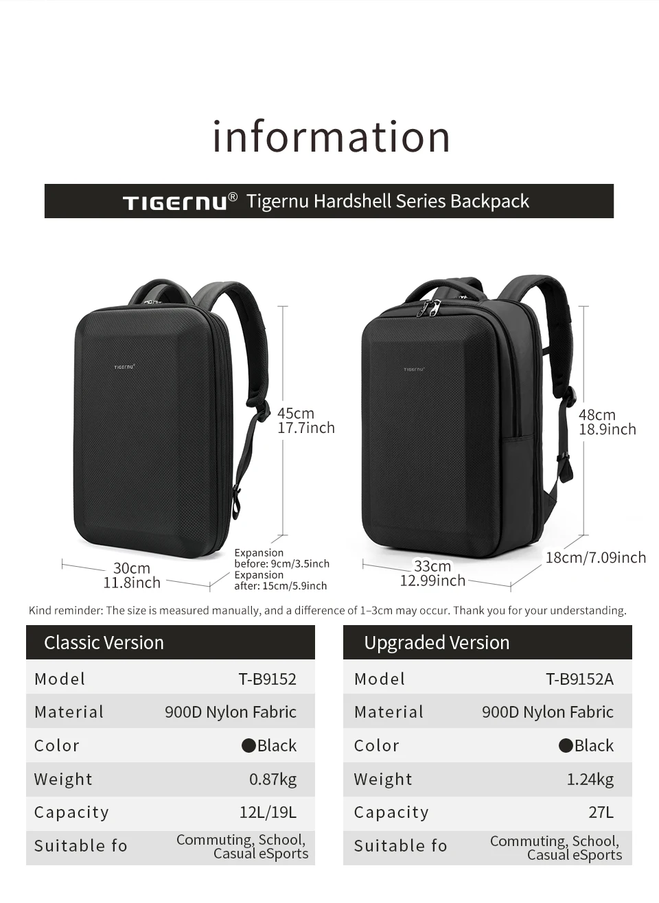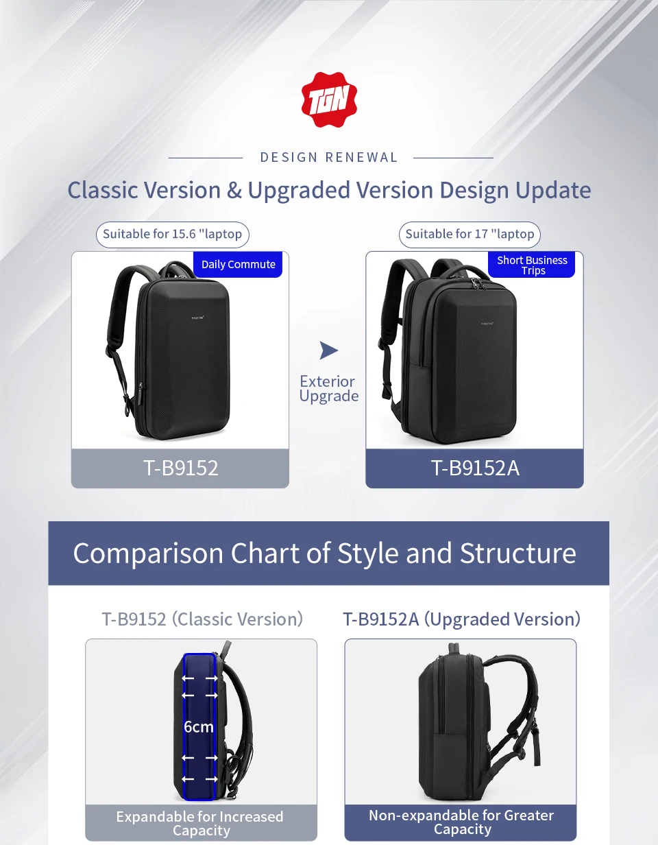 Upgrade Version Features: Brand Suspended Innovative Zipper; Waterproof; Hard Shell; Fit for 15.6inch Laptop; Curved shoulder strap; Honeycomb shaped breathable back cushion